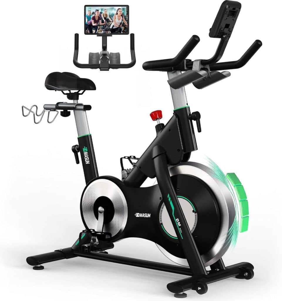 Le vélo d’appartement DMASUN propose un éventail de fonctionnalités qui enrichissent l’expérience de l’utilisateur. Avec son écran LCD clair, il permet de suivre en temps réel des données essentielles telles que le temps, la distance, la vitesse, les calories brûlées et la fréquence cardiaque, facilitant ainsi la personnalisation et l’optimisation des séances. De plus, le support intégré pour haltères et pour tablettes ou téléphones renforce la polyvalence de l’appareil, indispensable pour ceux qui aiment varier leurs exercices ou suivre des séances guidées sur des applications de fitness.
